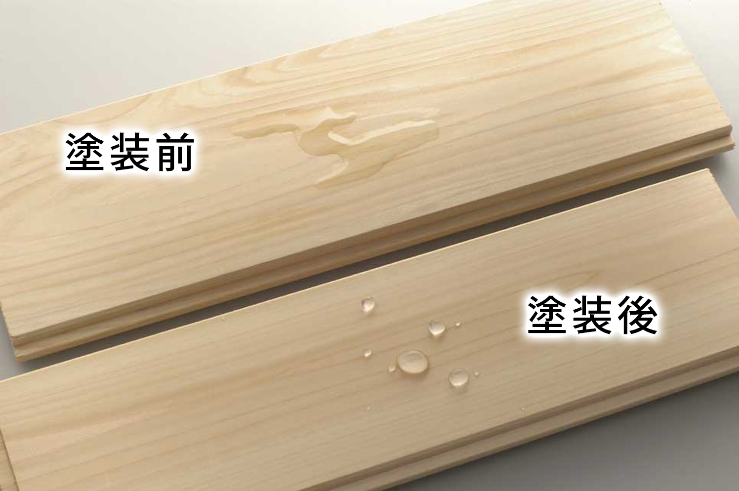 木の表面には「蜜ロウ」で膜をつくり、木の中には「エゴマ油」を浸透させることで撥水効果が長もちさせながら、木材を保護します。